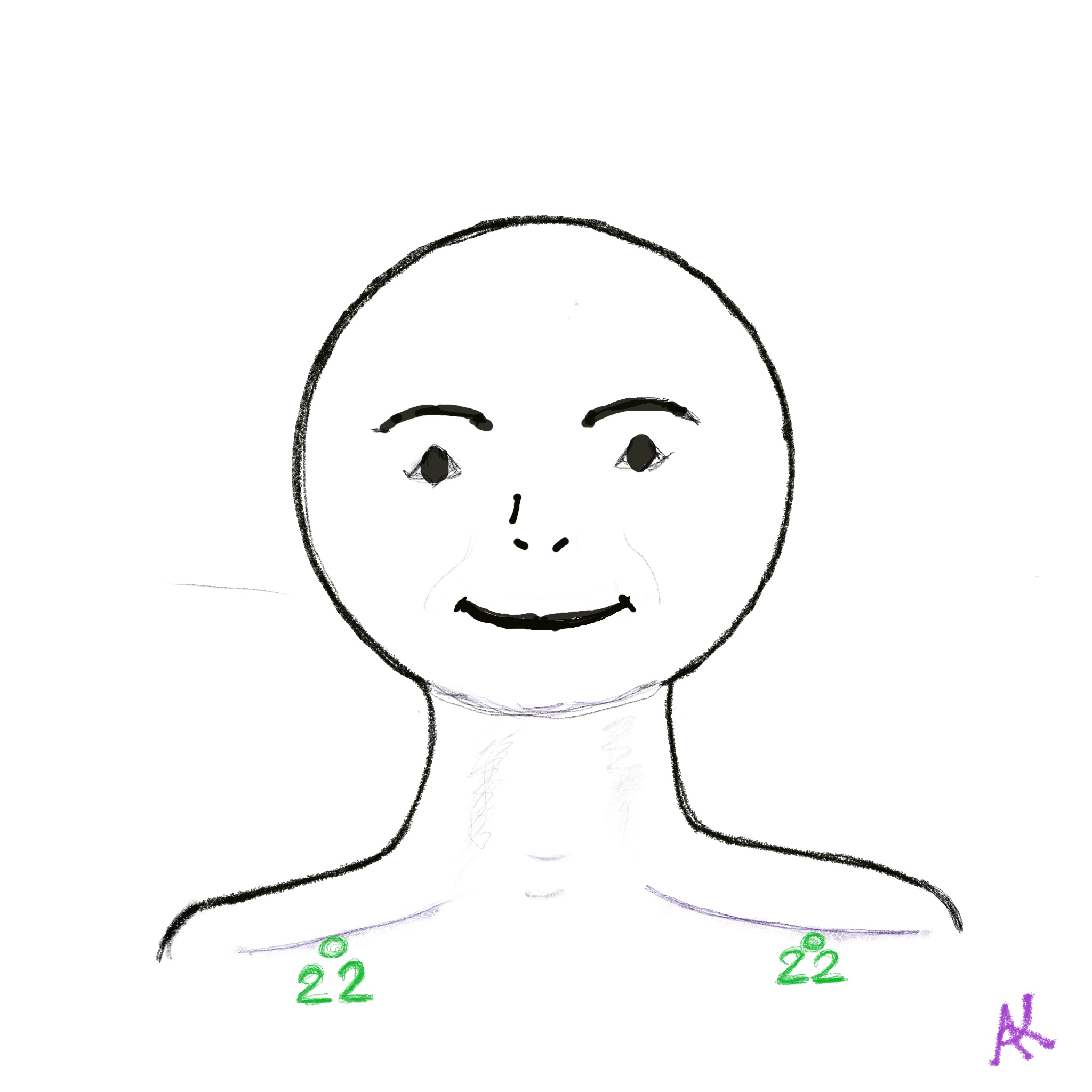 Aujourd’hui je vous présente le VS no 22 qui se situe directement sous la clavicule (au milieu) sur le côté gauche et le côté droit. (voir image).
